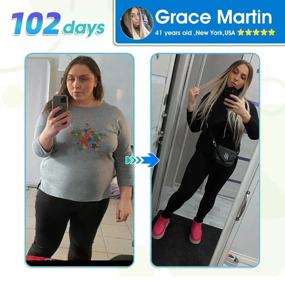 Two months in. and I never thought I'd see such a breakthrough! My family's thrilled with my transformation. I feel the vigor of my thirties. and my skin's improved. Apply one patch weekly—no side effects. just progress. It's better than any diet pill! - Linda Pearcy ⭐⭐⭐⭐⭐